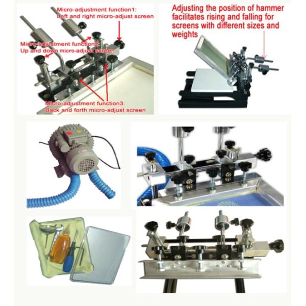Micro-device makes screen and shirt board joint evenly, micro-device up and down with different substrates, also for left and right, back and forth, which ensures the precision of printing.