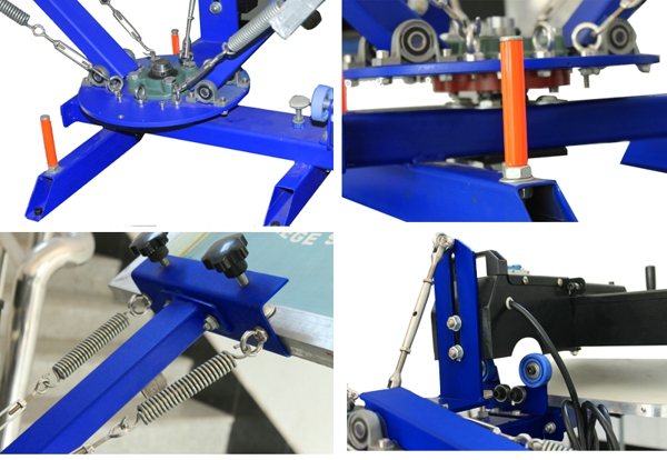 Special design of spring devices in screen adjusting up and down makes it easier for the user operations according to the sizes and weight of the screens, which guarantees proper spring intensity to avoid squeegees expelling and inks splashing in higher intensity and screen unfixing because of higher weight of screen frames and squeegees in loose intensity.